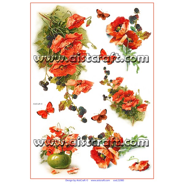 Papier de riz décoré AistCraft. Le papier de riz est tout aussi fin qu'une serviette, mais beaucoup plus résistant. Sa composition amène des petites fibres, ce qui le rend plus attrayant son utilisation dans la décoration de tout type d'objets. A couper ou déchirer et appliquer sur toutes les surfaces avec colle pour la technique de Découpage. 28 g