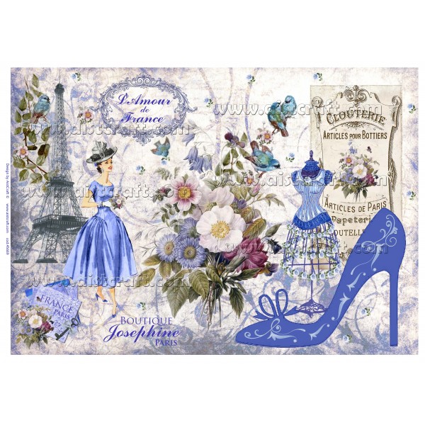 Papier de riz décoré AistCraft. Le papier de riz est tout aussi fin qu'une serviette, mais beaucoup plus résistant. Sa composition amène des petites fibres, ce qui le rend plus attrayant son utilisation dans la décoration de tout type d'objets. A couper ou déchirer et appliquer sur toutes les surfaces avec colle pour la technique de Découpage. 28 g