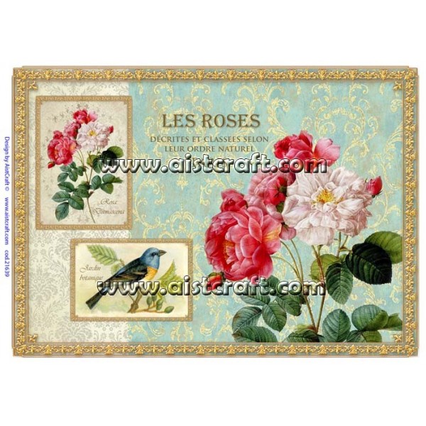 Papier de riz décoré AistCraft. Le papier de riz est tout aussi fin qu'une serviette, mais beaucoup plus résistant. Sa composition amène des petites fibres, ce qui le rend plus attrayant son utilisation dans la décoration de tout type d'objets. A couper ou déchirer et appliquer sur toutes les surfaces avec colle pour la technique de Découpage. 28 g