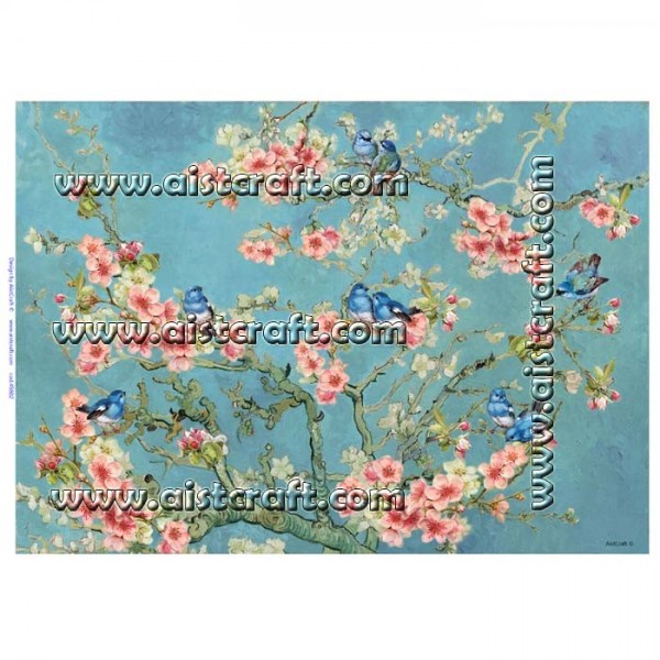 Papier de riz décoré AistCraft. Le papier de riz est tout aussi fin qu'une serviette, mais beaucoup plus résistant. Sa composition amène des petites fibres, ce qui le rend plus attrayant son utilisation dans la décoration de tout type d'objets. A couper ou déchirer et appliquer sur toutes les surfaces avec colle pour la technique de Découpage. 28 g