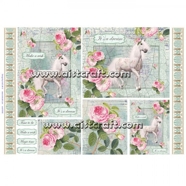 Papier de riz décoré AistCraft. Le papier de riz est tout aussi fin qu'une serviette, mais beaucoup plus résistant. Sa composition amène des petites fibres, ce qui le rend plus attrayant son utilisation dans la décoration de tout type d'objets. A couper ou déchirer et appliquer sur toutes les surfaces avec colle pour la technique de Découpage. 28 g