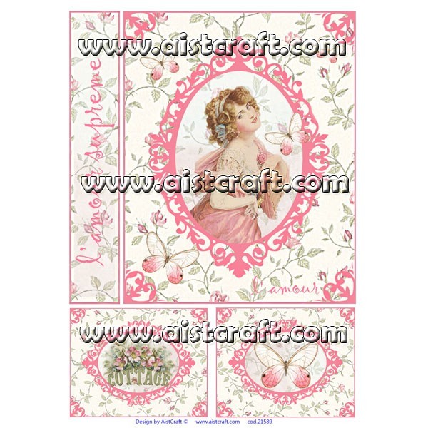 Papier de riz décoré AistCraft. Le papier de riz est tout aussi fin qu'une serviette, mais beaucoup plus résistant. Sa composition amène des petites fibres, ce qui le rend plus attrayant son utilisation dans la décoration de tout type d'objets. A couper ou déchirer et appliquer sur toutes les surfaces avec colle pour la technique de Découpage. 28 g