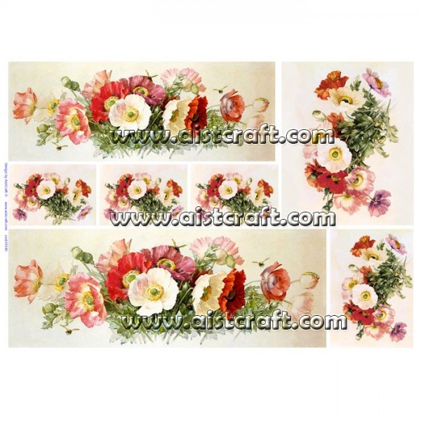 Papier de riz décoré AistCraft. Le papier de riz est tout aussi fin qu'une serviette, mais beaucoup plus résistant. Sa composition amène des petites fibres, ce qui le rend plus attrayant son utilisation dans la décoration de tout type d'objets. A couper ou déchirer et appliquer sur toutes les surfaces avec colle pour la technique de Découpage. 28 g