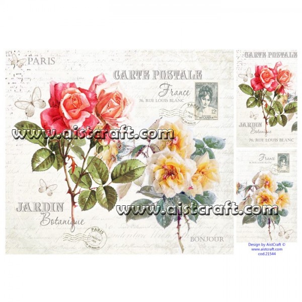 Papier de riz décoré AistCraft. Le papier de riz est tout aussi fin qu'une serviette, mais beaucoup plus résistant. Sa composition amène des petites fibres, ce qui le rend plus attrayant son utilisation dans la décoration de tout type d'objets. A couper ou déchirer et appliquer sur toutes les surfaces avec colle pour la technique de Découpage. 28 g
