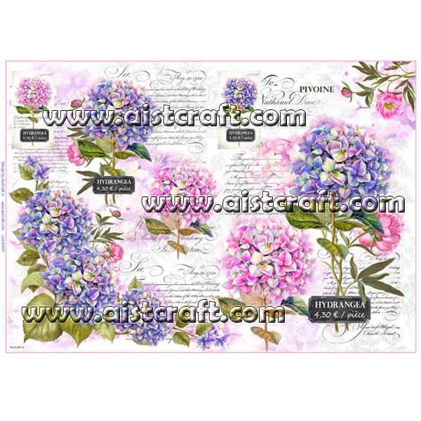Papier de riz décoré AistCraft. Le papier de riz est tout aussi fin qu'une serviette, mais beaucoup plus résistant. Sa composition amène des petites fibres, ce qui le rend plus attrayant son utilisation dans la décoration de tout type d'objets. A couper ou déchirer et appliquer sur toutes les surfaces avec colle pour la technique de Découpage. 28 g