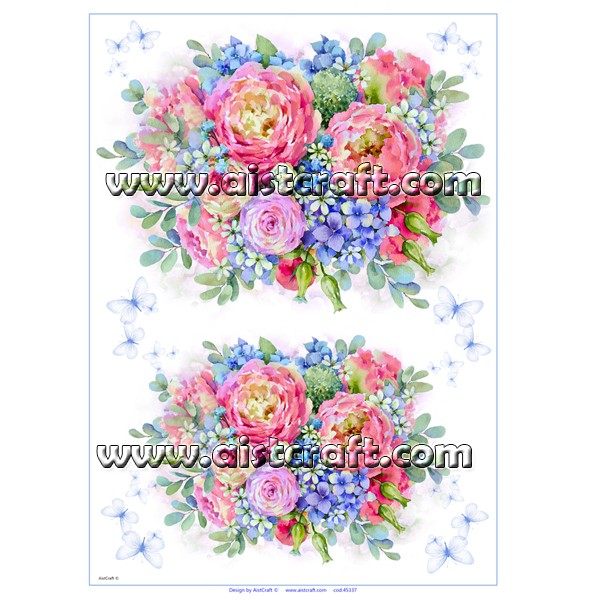 Papier de riz décoré AistCraft. Le papier de riz est tout aussi fin qu'une serviette, mais beaucoup plus résistant. Sa composition amène des petites fibres, ce qui le rend plus attrayant son utilisation dans la décoration de tout type d'objets. A couper ou déchirer et appliquer sur toutes les surfaces avec colle pour la technique de Découpage. 28 g