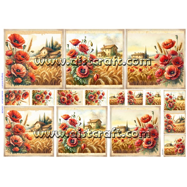 Papier de riz décoré AistCraft. Le papier de riz est tout aussi fin qu'une serviette, mais beaucoup plus résistant. Sa composition amène des petites fibres, ce qui le rend plus attrayant son utilisation dans la décoration de tout type d'objets. A couper ou déchirer et appliquer sur toutes les surfaces avec colle pour la technique de Découpage. 28 g
