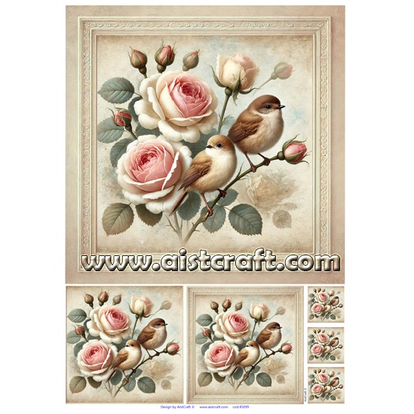 Papier de riz décoré AistCraft. Le papier de riz est tout aussi fin qu'une serviette, mais beaucoup plus résistant. Sa composition amène des petites fibres, ce qui le rend plus attrayant son utilisation dans la décoration de tout type d'objets. A couper ou déchirer et appliquer sur toutes les surfaces avec colle pour la technique de Découpage. 28 g