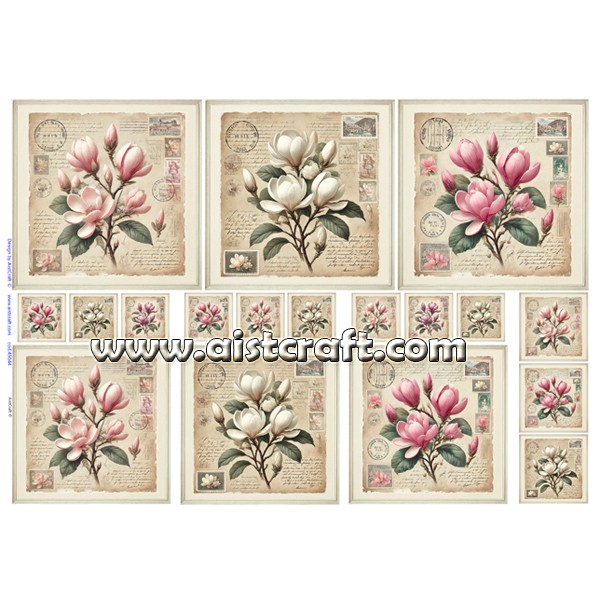 Papier de riz décoré AistCraft. Le papier de riz est tout aussi fin qu'une serviette, mais beaucoup plus résistant. Sa composition amène des petites fibres, ce qui le rend plus attrayant son utilisation dans la décoration de tout type d'objets. A couper ou déchirer et appliquer sur toutes les surfaces avec colle pour la technique de Découpage. 28 g