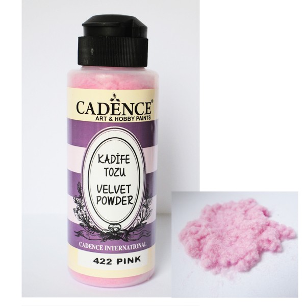 Poudre unique qui donne un effet Velours. Applique pour la technique de pulverisation sur les surfaces peintes. La poudre peut être collée à la colle pour le découpage ou Hobby glue Tacky 0660.