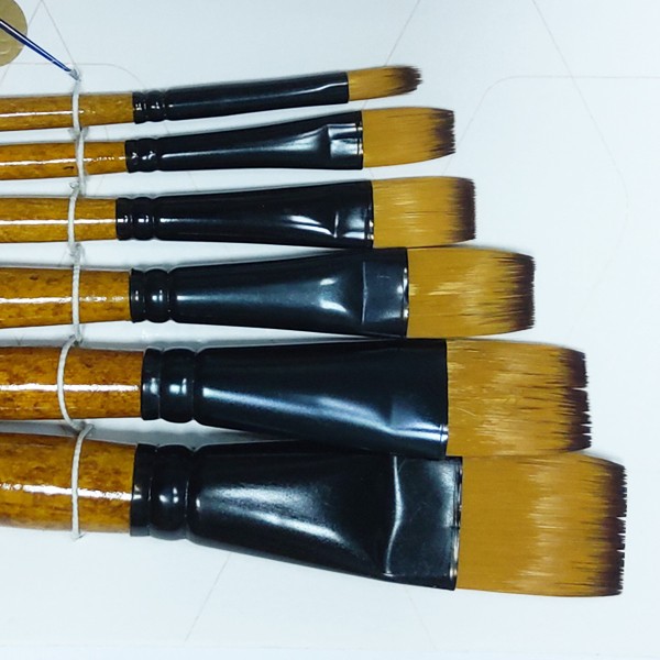 Un ensemble de différents pinceaux plats en poils synthétiques convient particulièrement aux peintures acryliques, à la détrempe ou à d'autres peintures de loisir.